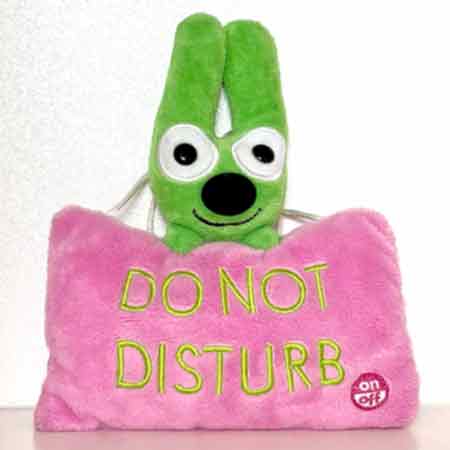 another plush door hanger, this time it says "do not disturb". the way yoyo peeks over the pillow with his little paws is so darling lol